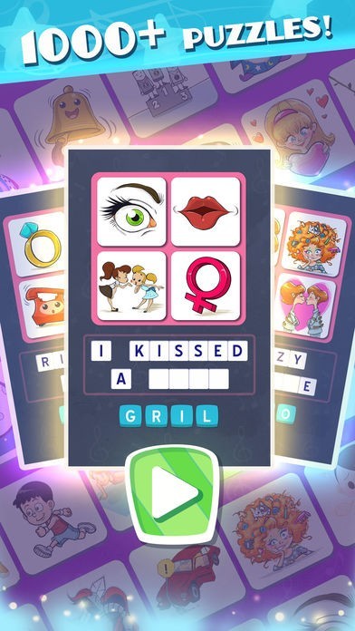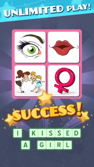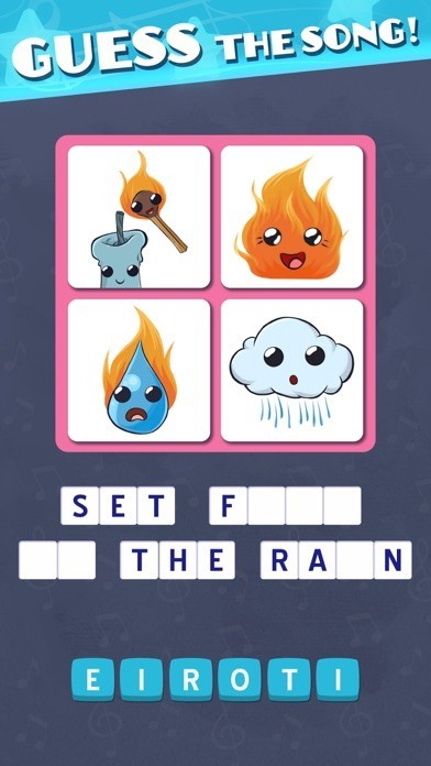 曲名を連想させる4枚のイメージが表示されるので、それを手がかりにヒットソングの曲名を当てることができます。イラストはカートゥーン風で見ているだけでも楽しい気分になるものばかりです。