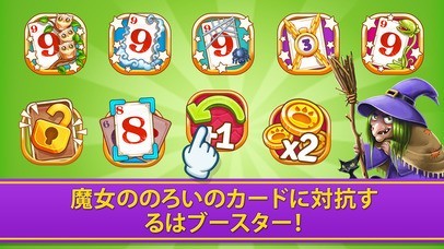 App Storeより引用ファンタジーな冒険世界に飛び込む覚悟はいいかな?ゴルフやスパイダー、トライピークスやクロンダイク、ピラミッドなどいろんなやり方があるソリティアが好きなら、このゲームを絶対気に入るはず!悪の魔女がキミに魅力的なカードパズルで挑戦してきた。いろんな仕掛け、幻惑や謎のカードでキミをおとしいれようとするぞ!