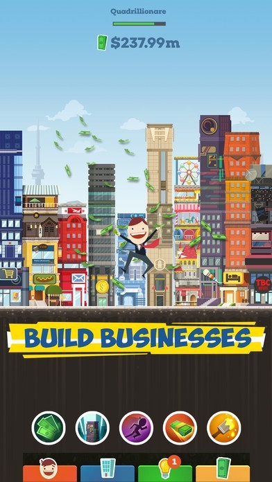 Tap to create money out of thin air and earn enough money to invest in your businesses. Shape your multi-industry conglomerate by building and upgrading your businesses. Don’t worry, we are living in the 35th century here. You will get to invest in some mind-boggling technologies such as the anti-gravity fork, luggage shrink ray, and the holographic window view!
