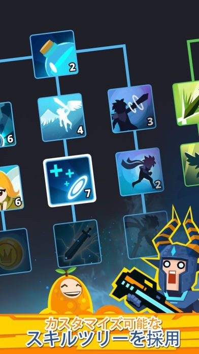 「タイタン タップ 2」は本格的なアクションRPGゲームです。 アメコミ風のヒーローを主人公に、総勢120種類にも及ぶタイタンと呼ばれる敵キャラとのバトルが繰り広げられます。 操作方法は簡単で、攻撃や特殊攻撃、魔法などのアクションボタンをタップするだけです。戦闘を繰り返して得られる経験値により、特殊攻撃や魔法の能力を取得でき、ヒーローをプレイヤー好みの強さに強化可能です。 さらに、戦闘報酬によって装備品を購入可能で、ヒーローの強さや外観も思いのままにカスタマイズできます。 そして、他プレイヤーとクランを組んだりフレンドになることで、戦闘における特殊効果を得られます。 1ステージの5分から10分ほどの短時間でプレイできるので、移動の途中や休憩時間にプレイすることも可能です。 ボスステージのクリアが困難な場合には、前のステージを何度も繰り返して経験値を集め、強力なスキルを習得して臨むと良いでしょう。また、ボスによって弱点が異なるので、弱点に応じた物理攻撃や魔法といった特定のスキルを強化して挑めば、ボスステージのクリアも可能になります。