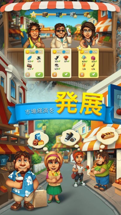 集めたお金は建築費に充てて町を大きくするにのに役立つのでゲーム内でお金を貯めるモチベーションが持てて一層ゲームを楽しめるようになっているのが良いです。商売と町づくりの両方を楽しめます。