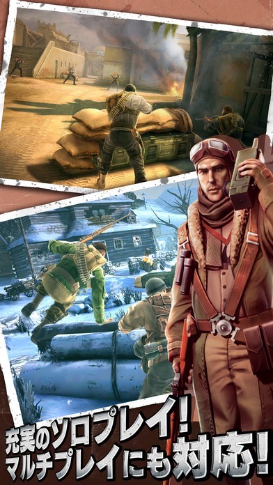 アプリ「ブラザーインアームズ®3:Sons of War」では、第二次世界大戦中の戦場を舞台にした、大人気戦争アクションゲームシリーズの3作目にあたる作品を、スマートフォンでいつでもプレイすることができます。ステージごとに課されるミッションは、ただ敵を倒すだけのものではなく、陣地への侵入や、特定の対象への狙撃を成功させることなどさまざまで、プレイヤーは状況に応じて適切な装備を選び、隊員たちの体力や攻撃力をもとに効果的な作戦を立ててミッションに臨むことになります。よりリアルに感じられるようグラフィックにもこだわっており、臨場感たっぷりのゲーム体験が可能です。