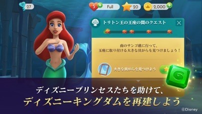 App Storeより引用憧れのディズニープリンセスたちがパズルゲームに大集合!魔法の嵐によって廃墟と化した王国を舞台に、新感覚のマッチ3パズルをプレイしながら、ディズニープリンセスたちを助けて、王国の再建を目指そう。ディズニーの人気キャラクターたちと一緒にオリジナルストーリーに沿ってミステリーを解きながら、まだ見ぬ世界へ冒険に出よう。