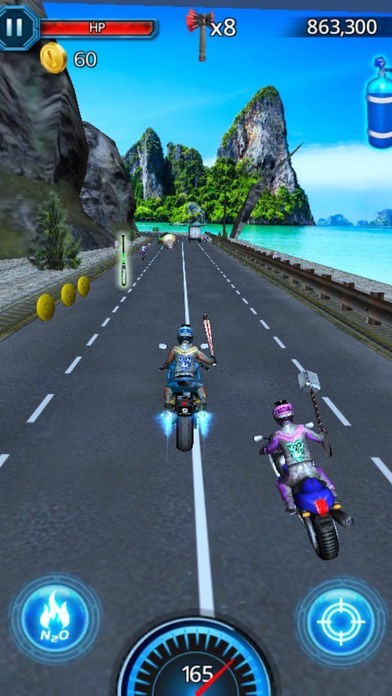 最高のレースゲーム 楽しいバイクのゲーム は操作が簡単に楽しめることが大きな特徴で、バットやスコップによる妨害やアイテムによるパワーアップもタップ操作だけで行なえます。
