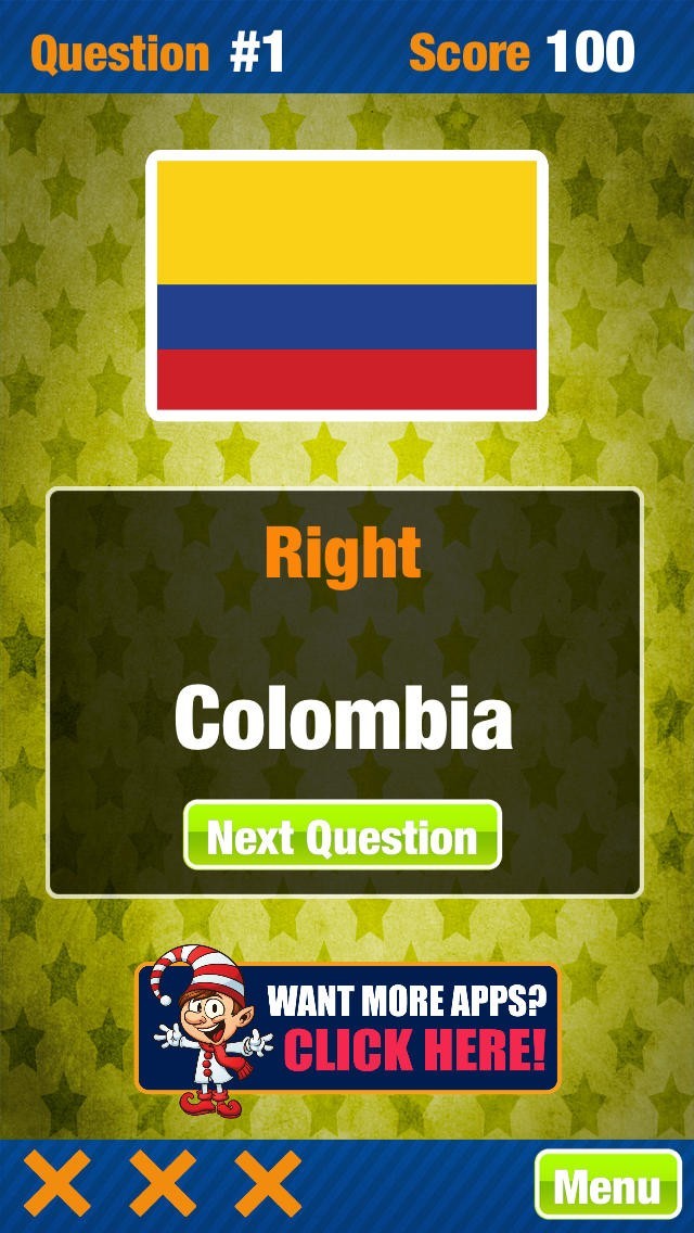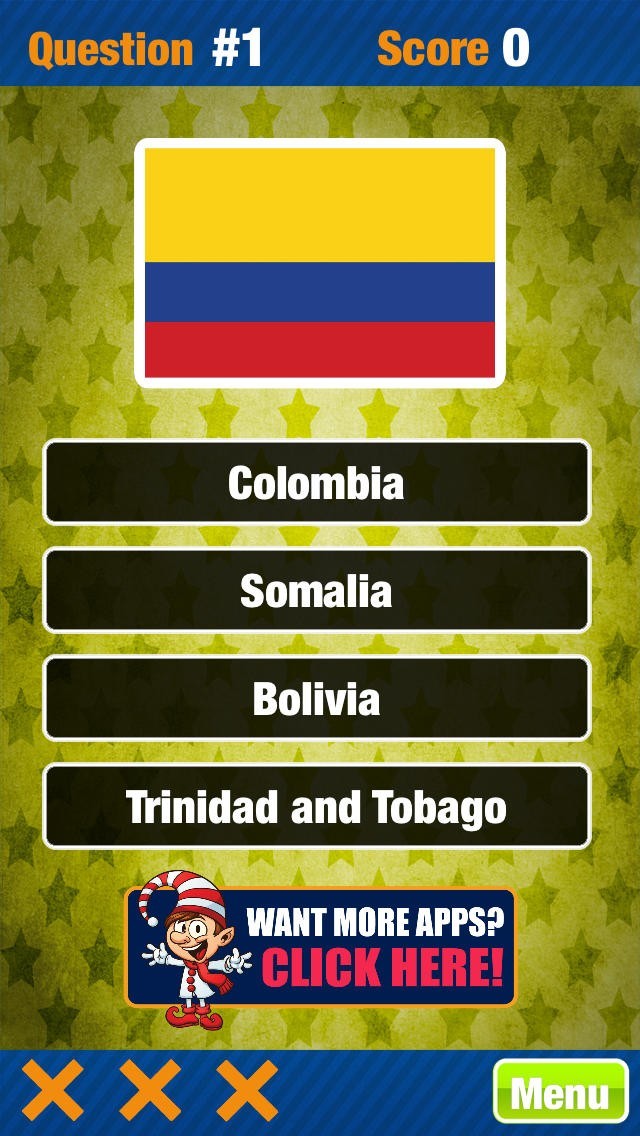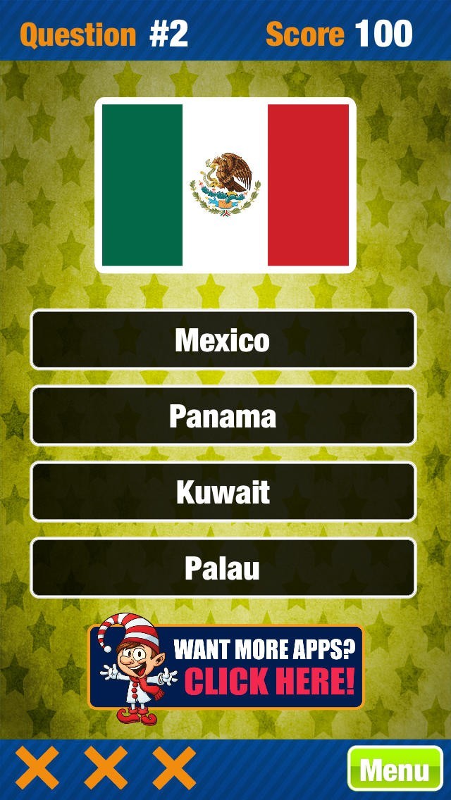 国旗世界トリビアゲームフリーアトラスクイズゲームは国旗のデザインを出題してどこの国の国旗かを4択から当てるのが基本のクイズゲームアプリとなっています。4択クイズですが3問間違えてしまうとゲームオーバーになってしまいます。連続正解で得点が増える要素もあります。なお、問題はすべて英語表記になっている点もポイントで、難易度が高くなっていますが、出題文章が長いわけではないので回答自体は国の名前を割り出せれば可能で、勉強になるとも言えるでしょう。