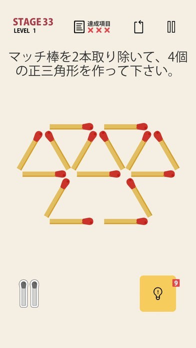 MATCHSTICKは、誰もが1度はやったことがあるマッチ棒を使った脳トレ古典パズルゲームです。