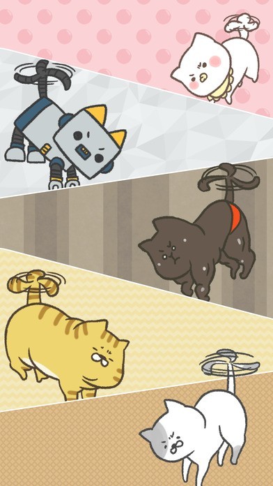 激ムズ!にゃんコプターはにゃんぷーというキャラクターを始めとした様々な猫のキャラクターたちがしっぽを回して空を飛びネズミを捕まえていくゲームです。操作はタップのみで行えるシンプルなもので、障害物などに当たらないように進むことが必要となっていますが、1ステージあたりのプレイ時間は短く、反面100近くのステージがあるため非常にやりごたえのあるゲームとなっています。ステージクリアのスピードに応じて星がもらえるようになり、ステージ開放やキャラクターの追加などができるようになります。