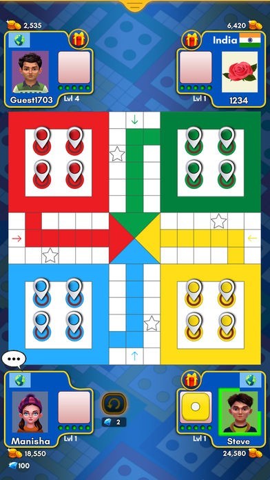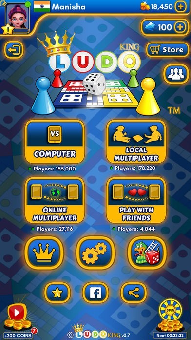 Ludo King is the modern version of the royal game of Pachisi, a game played between Indian kings and queens in ancient times. Roll the dice to play and move your tokens to reach the center of the board. Beat the other players to become the Ludo King.