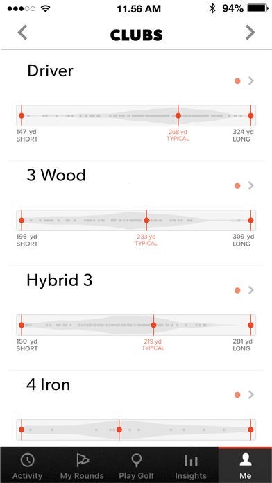 各ショットごとに飛距離を計測してくれる!自分の各クラブの限界を知れる!