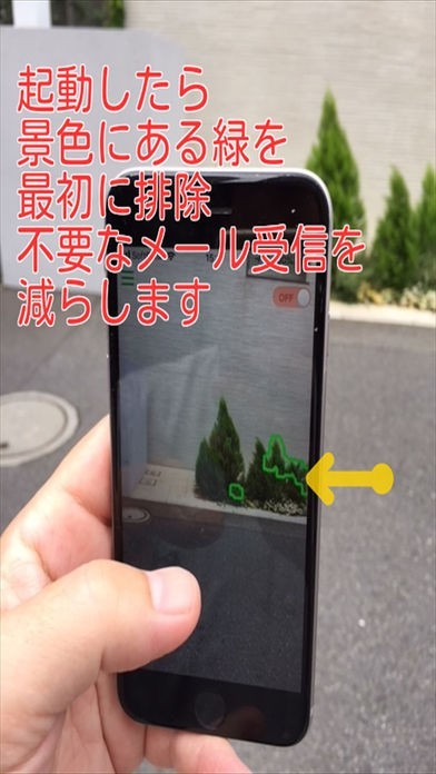 クロマキーのように、花壇や木などの背景の緑色には感知しないようにして、駐車監視員の緑色のみに反応するように設定して、来た場合にメールでお知らせされるようにすることができます。