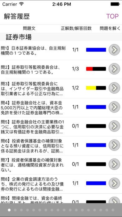 正解率が色別で表示されるので苦手な分野も分かりやすい