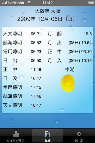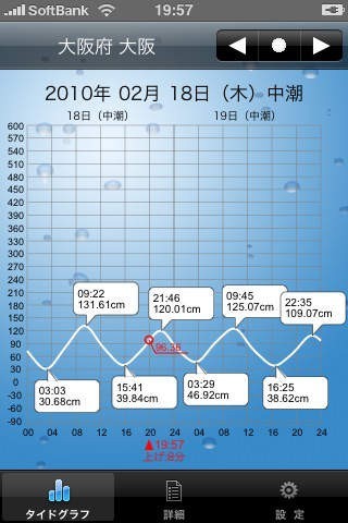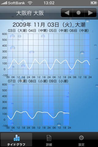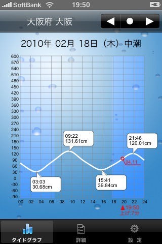 App Storeより引用潮汐を計算しグラフ表示することにより、潮の干満時間、潮位などを示す潮汐予測アプリケーションです。