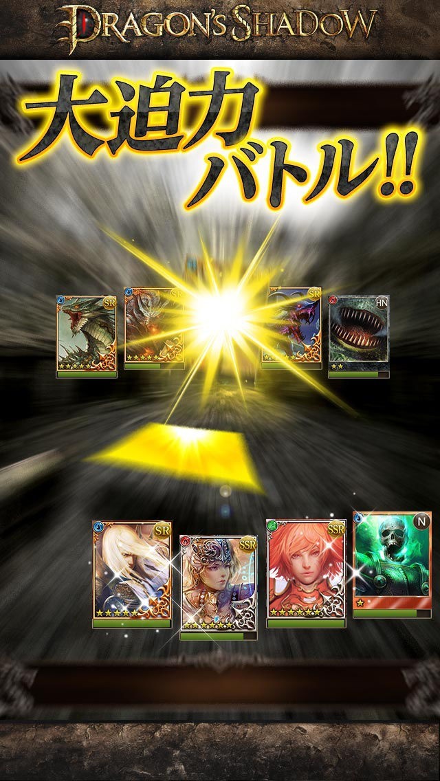 ドラゴンズシャドウはカードを集めバトルを繰り広げるファンタジーソーシャルゲームです。内容はドラゴンを倒す目的でプレーヤーがサマナーとなり、様々なクエストを攻略していきます。ドラゴンやエルフなどのモンスターたちがカードとなり、デッキを組んでバトルをしていくのでRPG好きにはたまらないグラフィックとなっています。カードはもちろん育成ができるので、自身のカードコレクションを強化していきましょう!PRG要素が満載のソシャゲーとなっています。