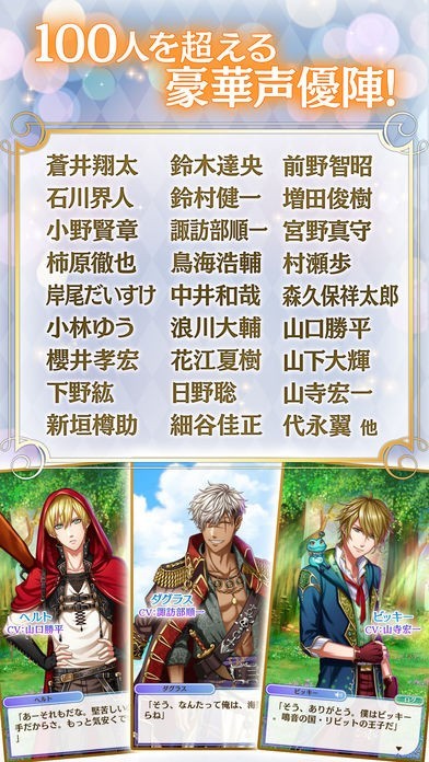 豪華声優陣がストーリーを彩る!100人の王子様達と一緒にパズルゲームに挑戦!