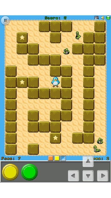 ドット絵のペンギンを動かしてブロックで仕切られたエリアを直進します。また敵キャラが途中遮ったり進行を遅らせたりダンジョンマップのようなスリリング感をプレイできます。