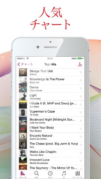 本アプリケーションでは、何百万の無料の曲を検索、数十のストリーミング用のプレイリストを作成できます。