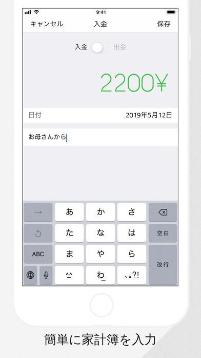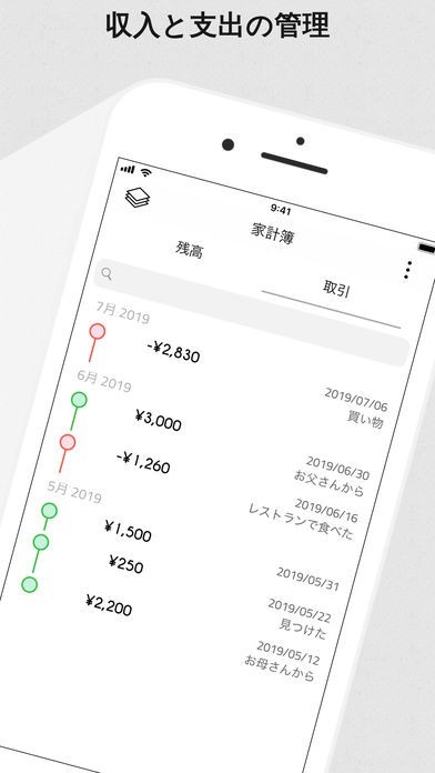 記載している支出データをPDF形式に出力させる事が可能なので、家族や他のユーザーに共有したい時に重宝するでしょう。リスト形式で収支状況が閲覧出来るのも特徴ですね。