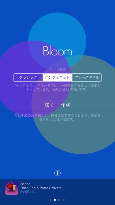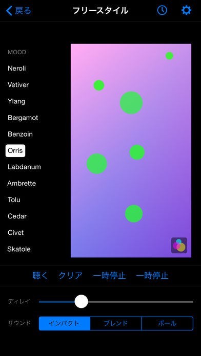 Bloomというアプリはこれを使えば音の波紋を作ってリラックス効果を得る事が可能になります。また自動生成機能があるので勝手に波紋を作って音だけ楽しむ事もできるので寝る前に聴く事も可能です。