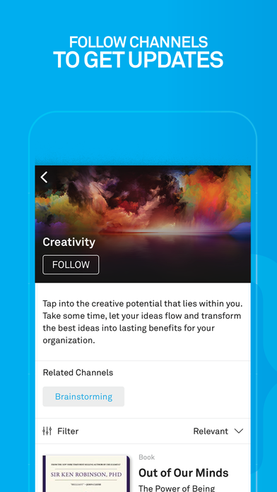 • Follow expert-curated channels in topics such as business, productivity, leadership, personal development, health, science & technology, and more.