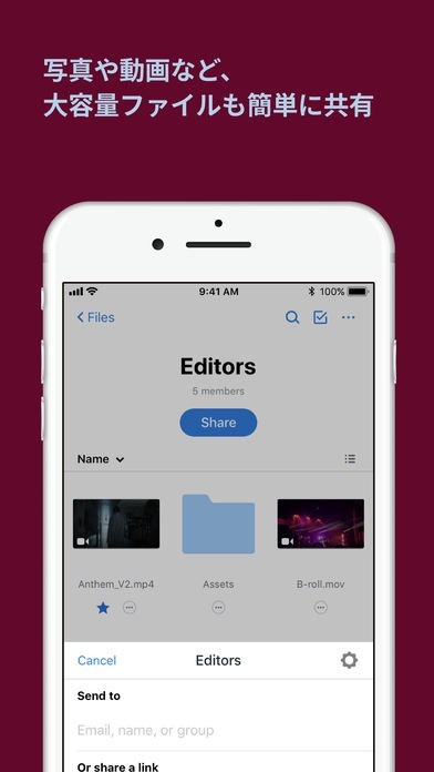 「Dropbox」はいつでもどこでもインターネットにつながる環境さえあればアクセスすることができるワークスペースとなっています。複数のユーザーでファイルを共有することができるようになっているので、ビジネスや学校のレポートなどチームを組んで取り組むプロジェクトを進める際にインターネットを介して共同作業を行うことが出来ます。ワードやエクセル、パワーポイントのファイルを同期して、オンラインで編集することも可能になっています。