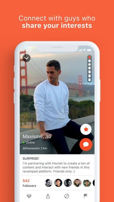 Hornet was built by gay men to create the hottest online community and has, unlike other apps, most features already free, such as hundreds of profiles views. Tell everyone how much you like this in the app store reviews. We love positive feedback!