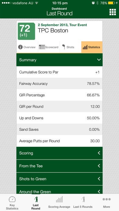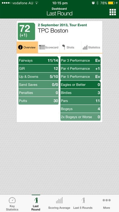 App Storeより引用Imagine taking your golf game to the next level. GRGS is comprehensive and easy-to-use, calculating over 200 stats per round to provide you (and your coach) with tour-level statistics and analytics to improve your game. GRGS enables you to see where your game is now, where you need to focus your practice, and gives you the ability to track your performance over time.