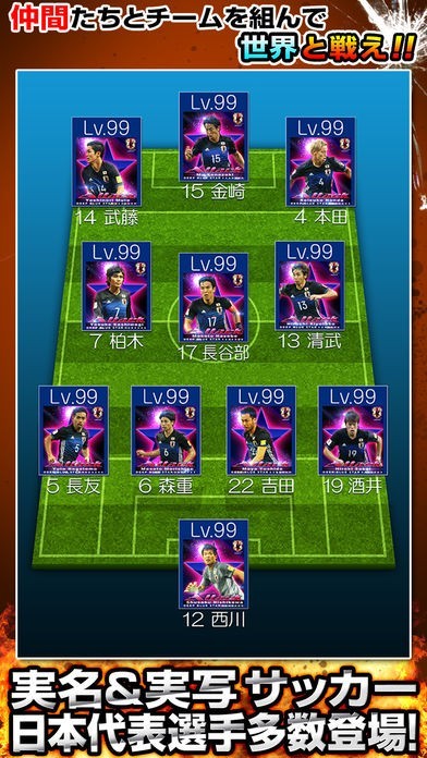 ※ゲーム画面およびアプリ説明文に登場するサッカー日本代表選手11名は2015年11月12日シンガポール戦の先発メンバーです。