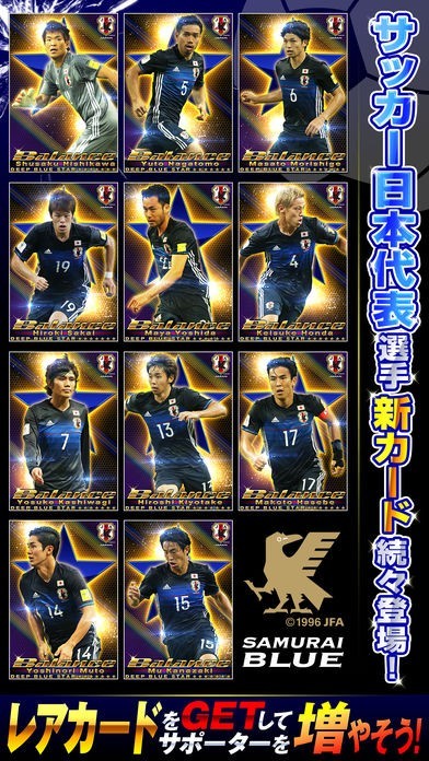 ※現在このアプリに登場するサッカー日本代表選手は、2015年6月および2016年3月の代表戦、および2015年11月12日シンガポール戦に出場した選手の計27名です。