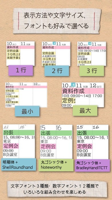 文字フォントやカラーを選べ、紙のカレンダーと同じようにアプリでスケジュール管理したい方におすすめ