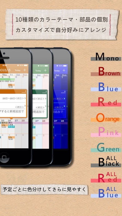 10種類の色分け自由自在!予定毎に色分けできて見やすい