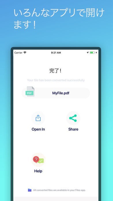 フォーマットを高速に変換するだけではなく、変換されたファイルを閲覧管理することも出来ます。また他のアプリで使用したり、iTunesを通じてパソコンで開いたりすることも可能です。