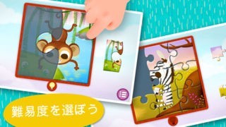 パズルの難易度を2ピースから9ピースまでの三段階から選んで遊べたり制限時間が無いのでじっくりと遊べるので子供が自分のペースを守りながら遊ぶ事ができるアプリになっています。