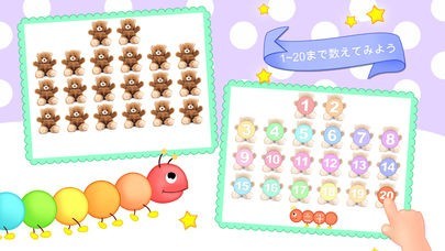 音声で最初にその物の名前を行ってから問題を出してくれるので数の数え方だけでなくものの名前も同時に覚えていける
