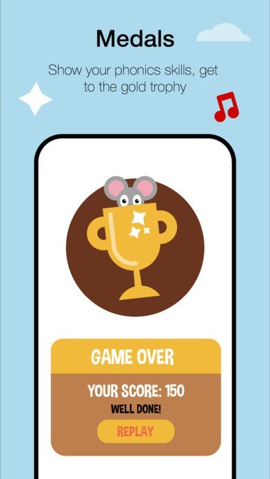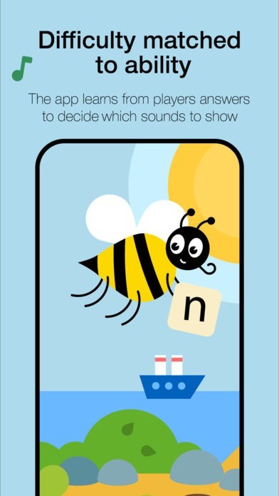 The app learns from the answers given by the player. It shows sounds and words that they are comfortable with less frequently, and ones they find challenging more frequently, until they are familiar with them.