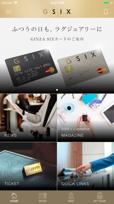「GINZASIX」は、銀座エリアにある最大の商業施設を便利に利用できるコンテンツが満載の公式アプリになります。施設内のショップで利用することができるポイントカードの代わりとして利用することが可能となっていて、アプリを提示してポイントを貯めたり利用することができるほか、施設内レストランの予約なども可能です。
