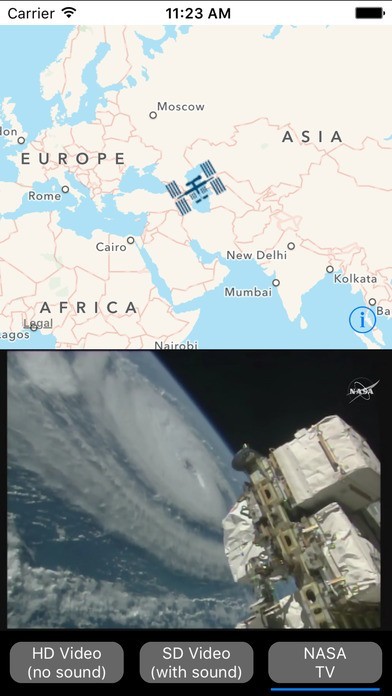 App Storeより引用Live video from the International Space Station. You can see earth views and internal views when the crew is on-duty. Additionally you can track the ISS position on a map.