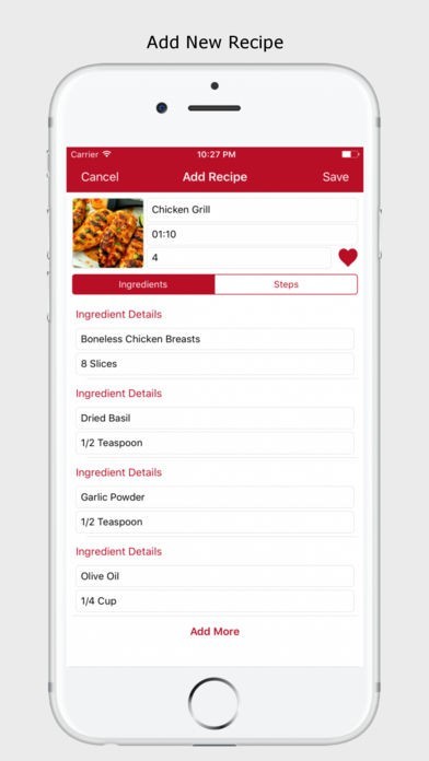 • Add recipe (hooray, there's a 3D touch for it) with ingredients and steps. Not just that, you can include your recipe image and other details.