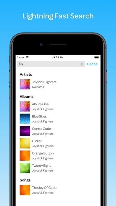 このアプリには検索機能が搭載されています。そして検索のスピードがとても速いので楽曲数が多くても素早く目的の楽曲w見つけることが出来るのでお勧めです。また、プレイリストも作成することが出来ます。
