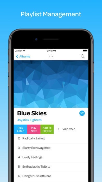 Glider Music Playerはおしゃれかつシンプル機能で操作性にこだわったミュージックアプリです。簡単にミュージックの並べ替えが出来たり、アルバムのデザインをカスタムしたりすることが出来るのでお勧めです。