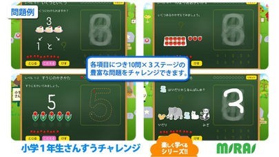「小学1年生さんすうチャレンジ」は、小学1年生で学習する算数の内容を収録した、進学準備に役立つアプリです。