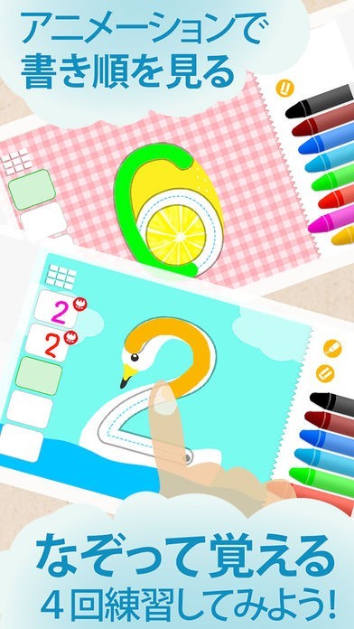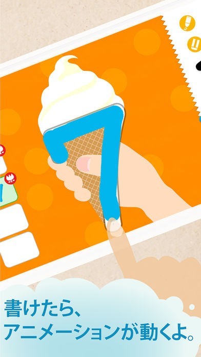 興味を持ち始めたお子さんには、遊び感覚でタッチすることで数字を認識する手助けを、数を数えられるようになったお子さんには、正しく数字を書く練習の手助けとなります。
