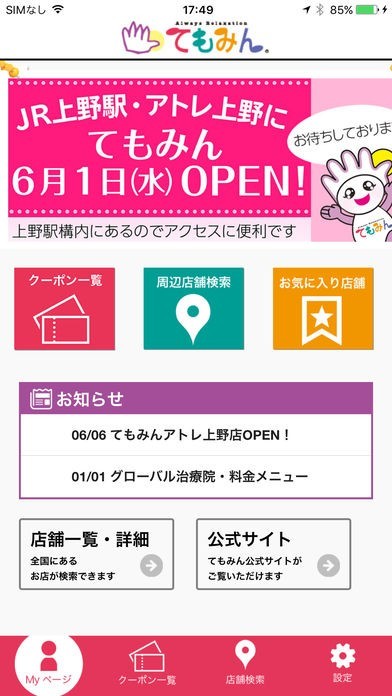 ・日本全国の「てもみん」・「グローバル治療院」・「F(エフ)」・「オプティマム」・「PLANET」が簡単にあなたのスマートフォンで検索出来ます!