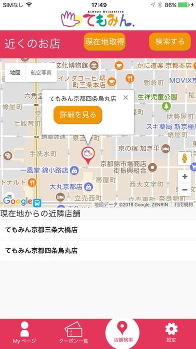 ・「周辺検索」で今いる場所から最寄の店舗の検索が出来き、店舗までの経路検索も行えます!
