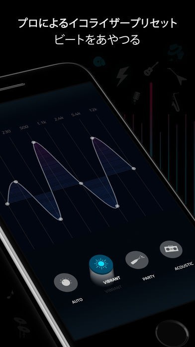 聞きたい音楽に適したイーコライザーは自動選択だけでなく自分で組み合わせることもできる他、ベース音を強くして重低音のある音楽にしたりと、自分好みに音楽の聞き方を微調整できます。