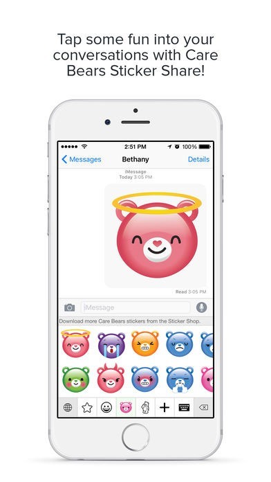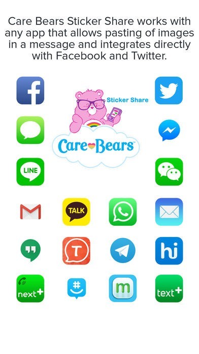 テキストメッセージにケアベアのステッカーを追加して友人と共有できるようにしてくれるツール