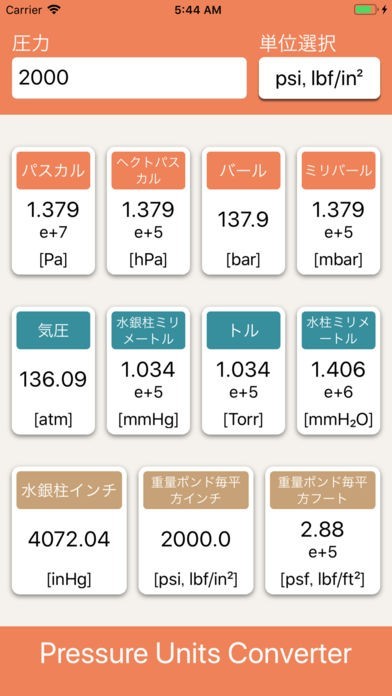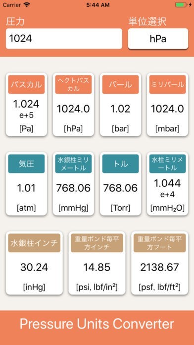 圧力を別の単位に換算したい時に利用してください。手間をかけずに一度に複数の単位に変換できます。画面右上部で単位を細かく選択可能です。必要に応じて使用してください。