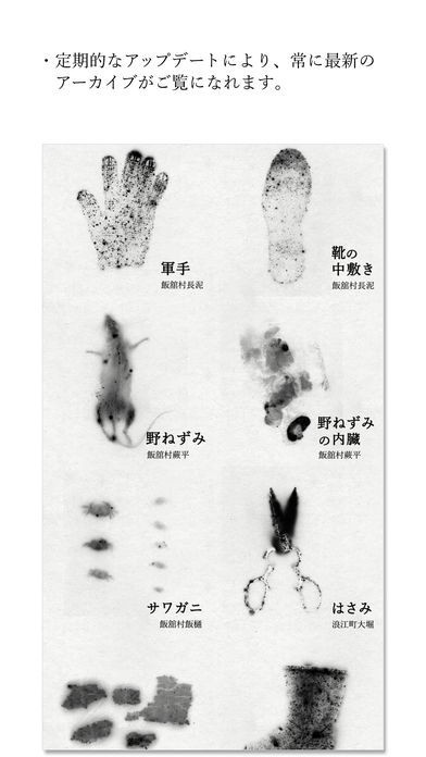 3.11の忌まわしい原発事故により大量の放射性物質が飛び散りました。このアプリは汚染物質の放射線像を撮影して一つにまとめた物です。それぞれの収集物の詳しいデータも記載しています。