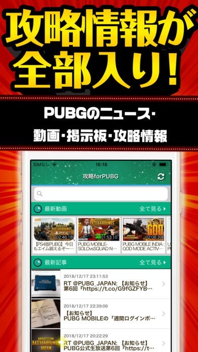 PUBGの最新ニュースや攻略情報がチェック出来るスマホアプリ