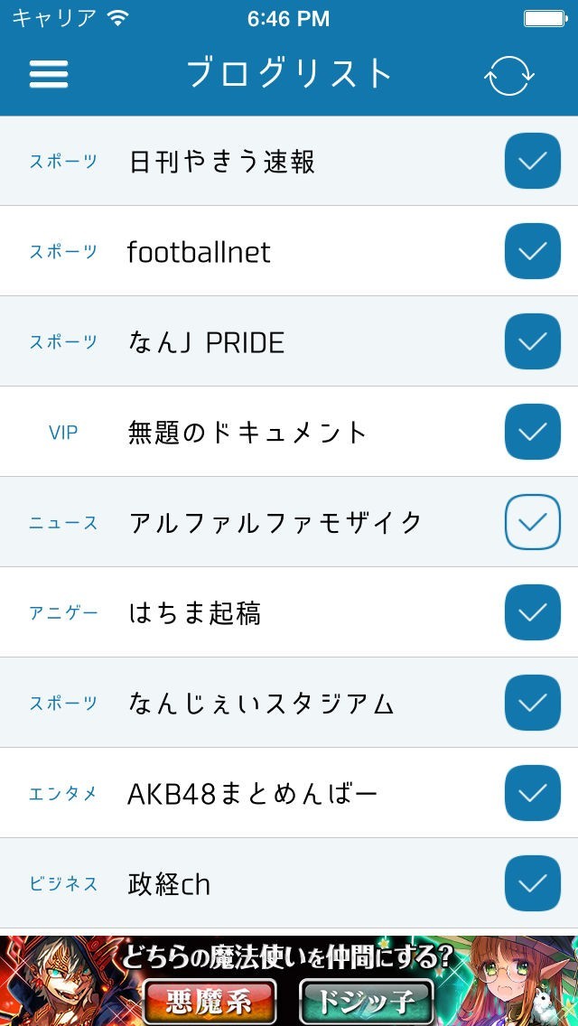 ブログリストでチェックしたサイトのみを表示できます。表示したくないサイトはチェックを外して下さい。