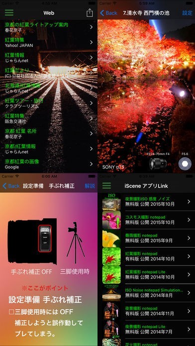 夜景紅葉ライトアップ撮影 notepadのスクリーンショット